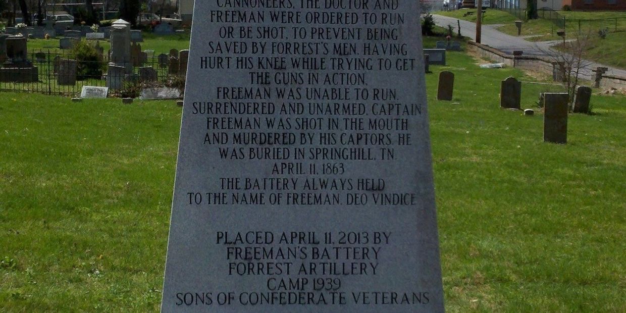 On Saturday, June 18, 2011, Freemans Battery Forrest Artillery Inc. dedicated the Historical Marker shown below, to honor Captain Samuel Freeman, Forrest's first Captain of Artillery, at Nathan Bedford Forrest's boyhood home, at 4435 Pyles Road, Chapel Hill, TN. 37034 Monies were raised from general membership dues